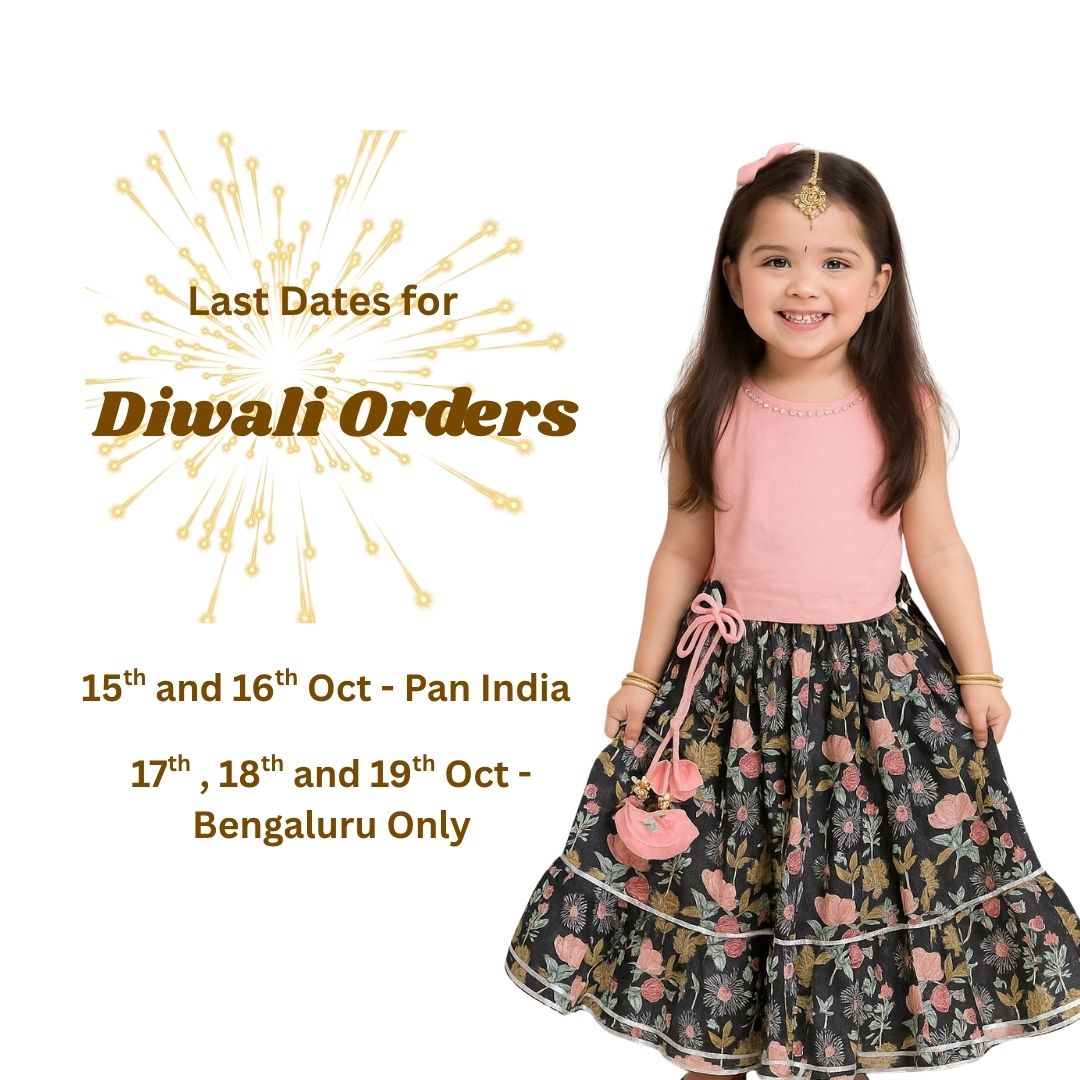 Peach And Black Floral Cotton Lehenga Set - Set of 2