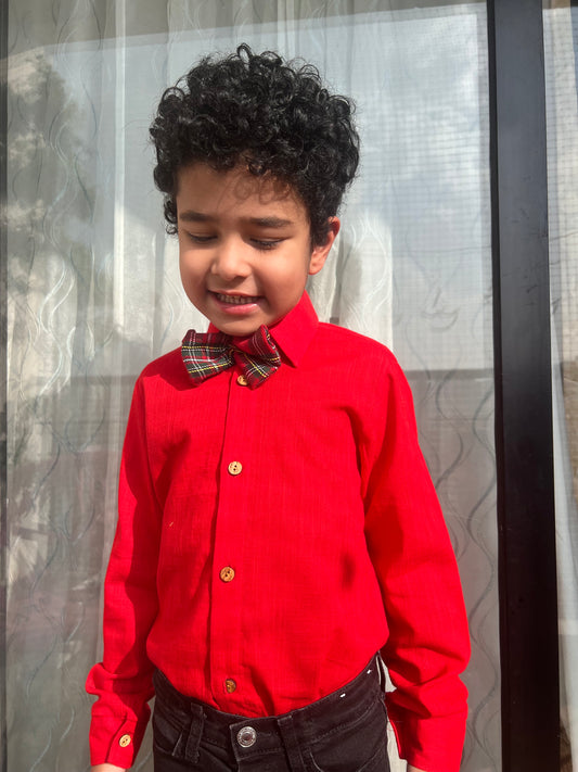 Boys Cotton Shirt With Checkered Bow-tie