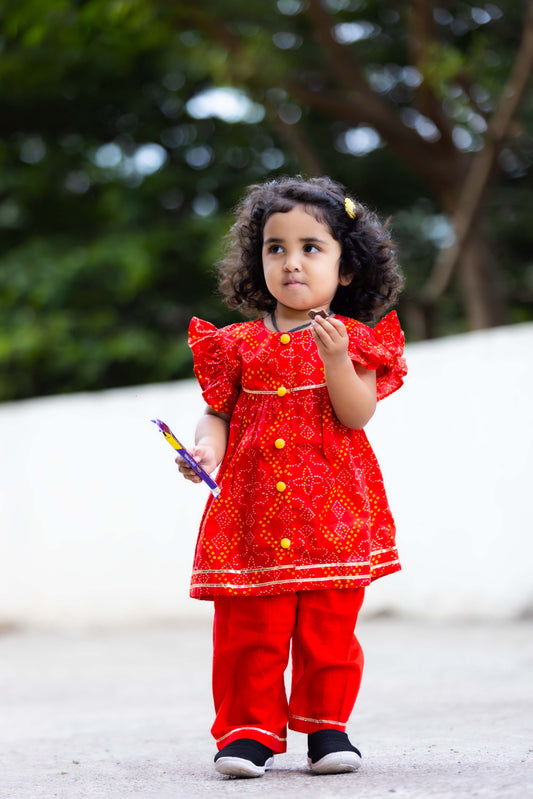 BAHAAR:Infants - Baby Girl Red Bandhani Jahbla Set