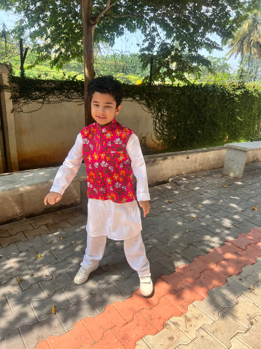 BOYS RED BANDHANI GOTAPATTI DHOTI KURTA SET