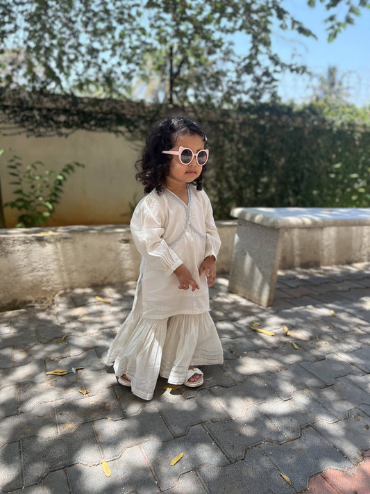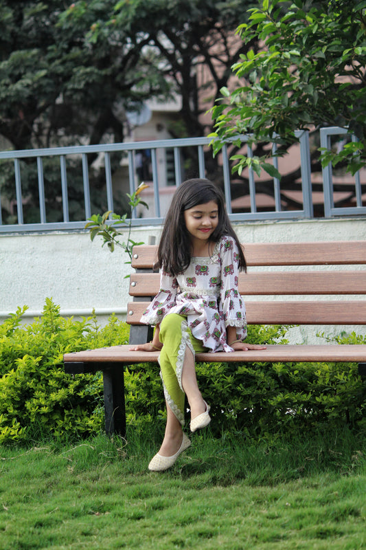 GIRLS MINTY GREEN SHARARA SET WITH LACE DETAILS