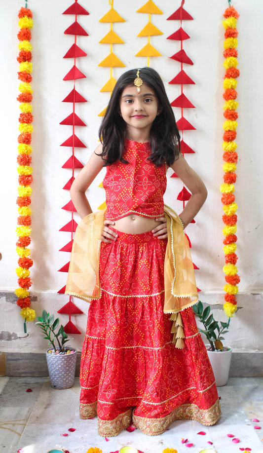 Sold outRed Bandhani Gotapatti Lehenga Set