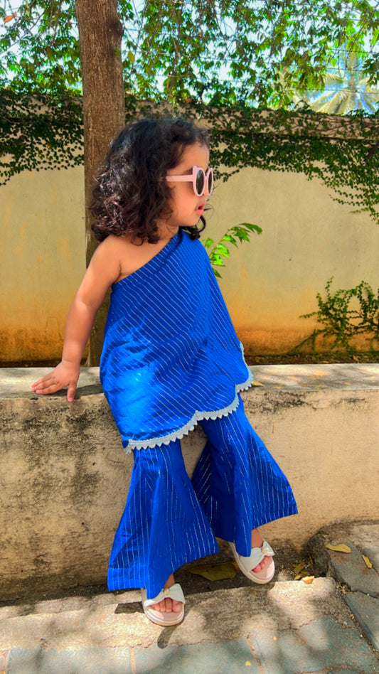 GIRLS BLUE FLORAL GOTAPATTI ANARKALI PALAZZO SET