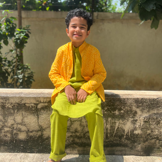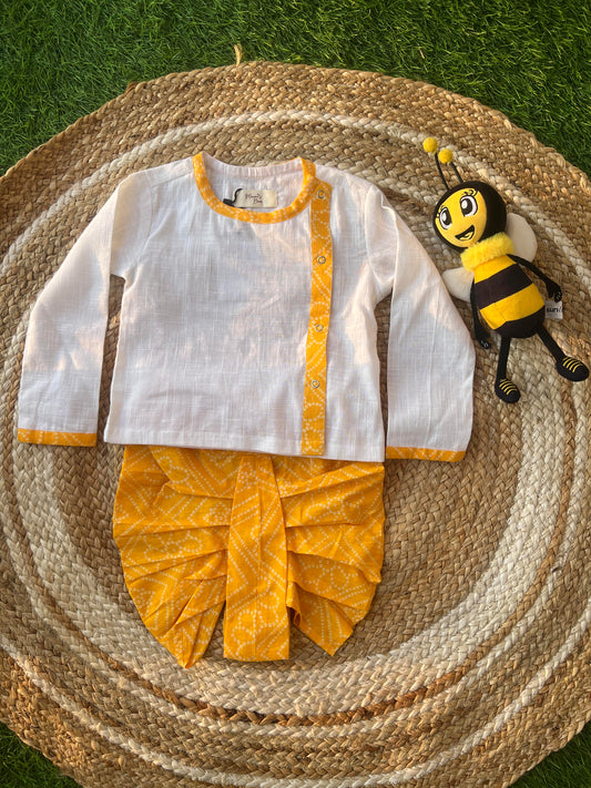 Baby Boy Yellow Bandhani Dhoti Kurta Set