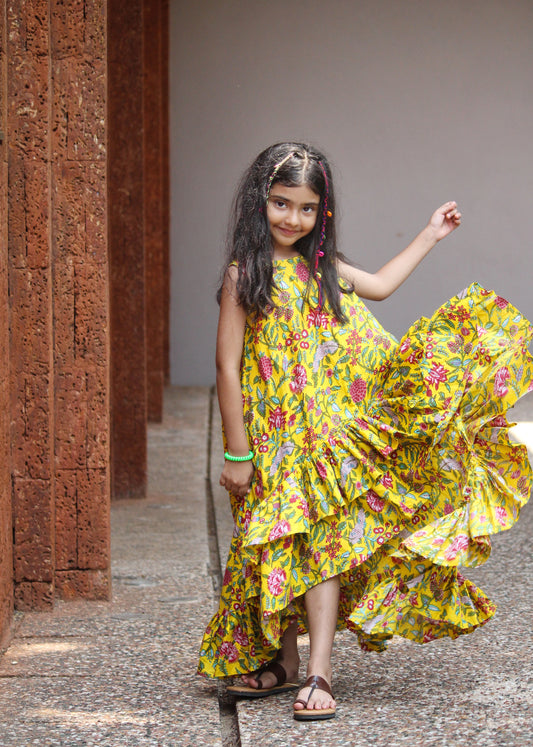 Royal Blue Cotton Floral Lehenga Set With Head Scarf