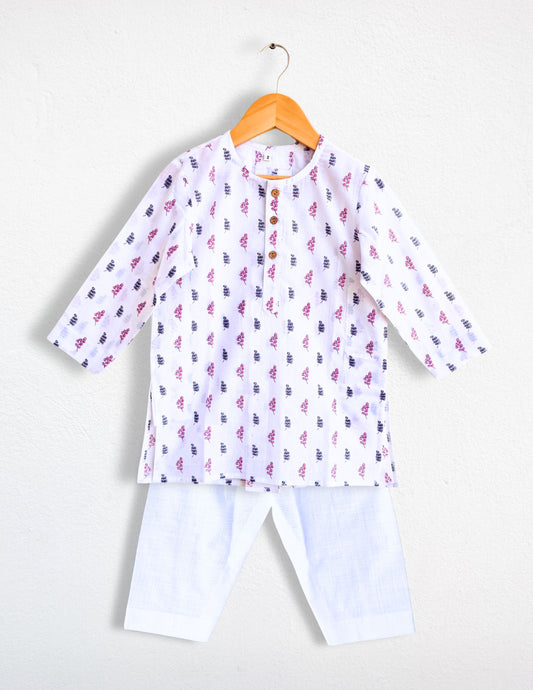 Red Leheriya Printed Cotton Kurti With Orange Tulip Pants - Set of 2