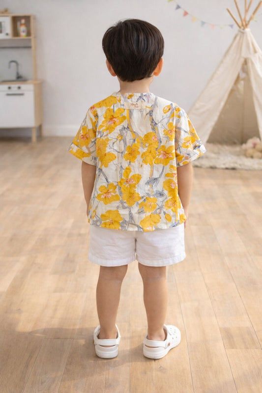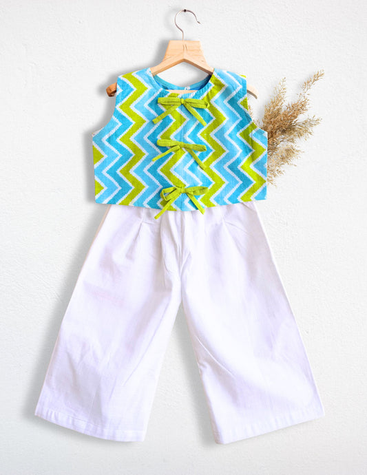 Yellow Leheriya Printed Cotton Kurti With Tulip Pants - Set of 2