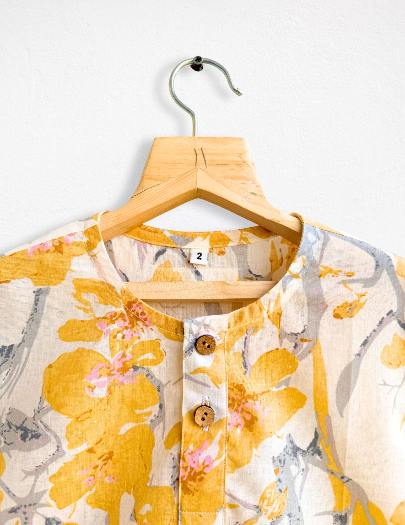 This boys shirt and shorts set features a white base shirt with a cheerful yellow floral print all over, paired with matching white shorts for a fresh, summer-ready look. Designed for comfort and easy movement, this set is perfect for warm days filled with play and fun.