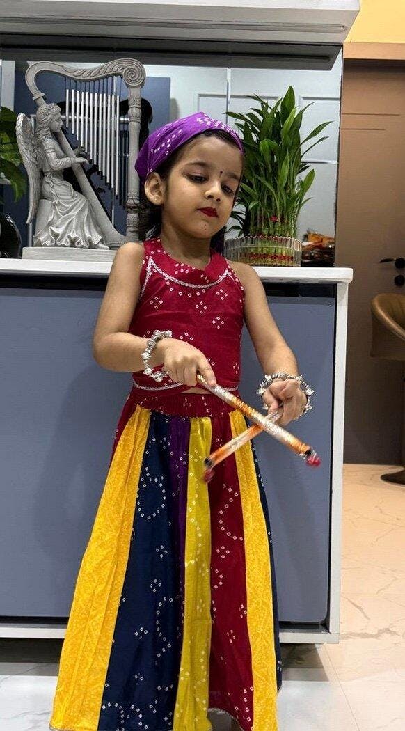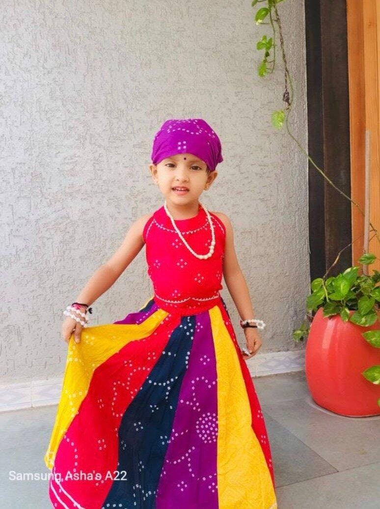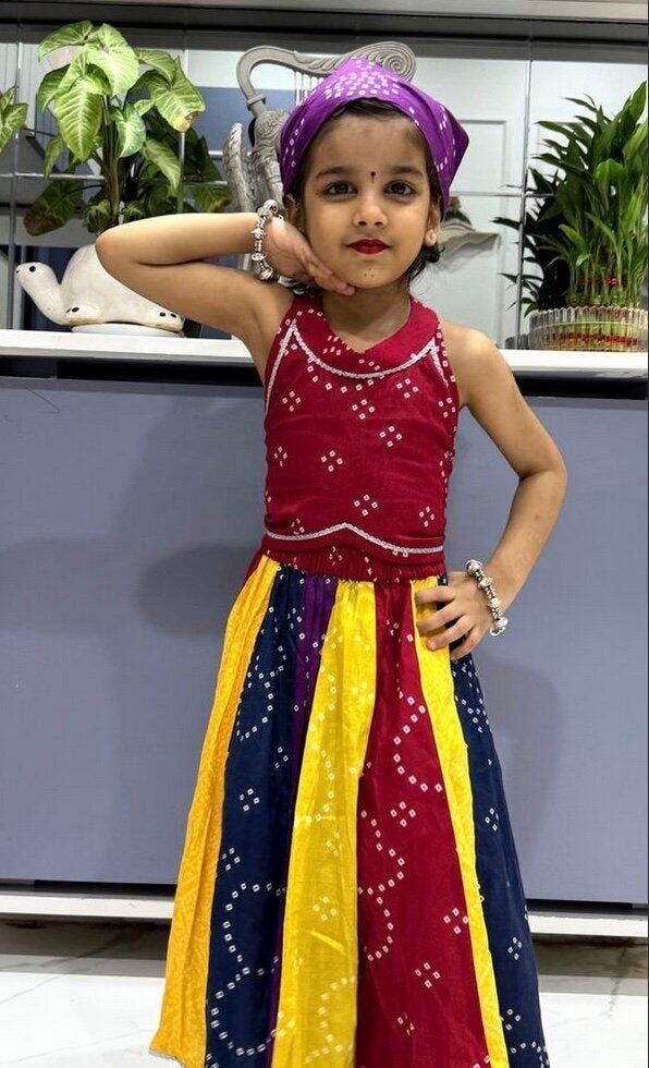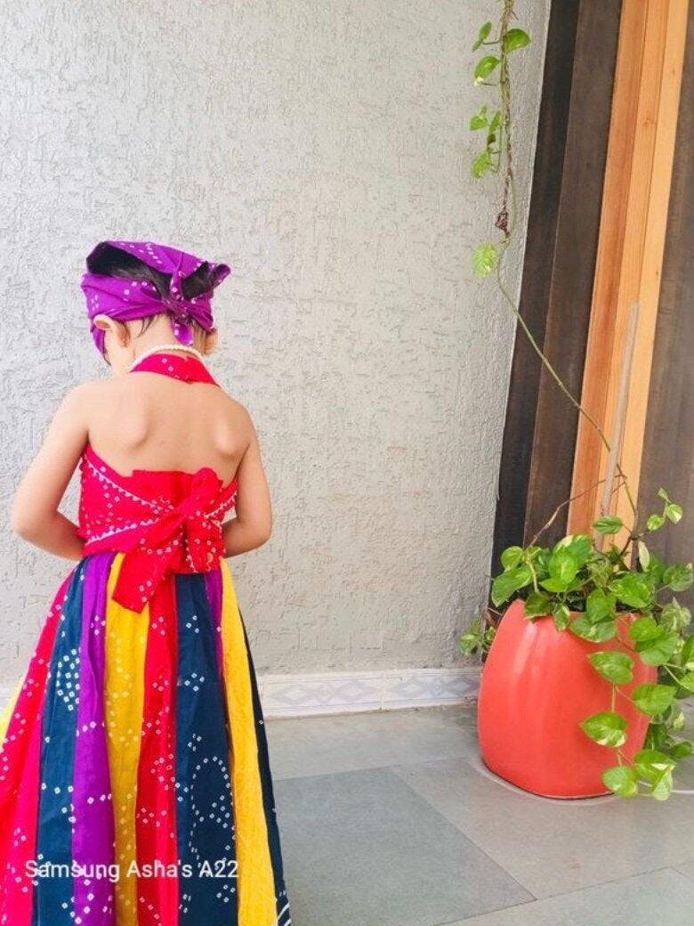 Our Girls Multicolour Bandhani Lehenga Set is a celebration of color, comfort, and culture. This 3-piece set features: